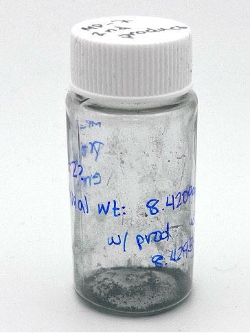 We tested microwave reaction conditions for the previously synthesized small molecules. Reagents were added to a microwave vial under inert conditions and irradiated under microwave at 150 ºC for 30 minutes. Samples were cooled to room temperature and dissolved in THF before being set to reflux with chloranil for 10 minutes in open air. Samples were then precipitated in cold water and recrystallized according to the literature.6,7 These were more difficult reactions to work up due to them being solvent-free reactions in the microwave–which often ended up quite burnt into the vials. More work is needed to confirm that this synthesis route can have viable yields!