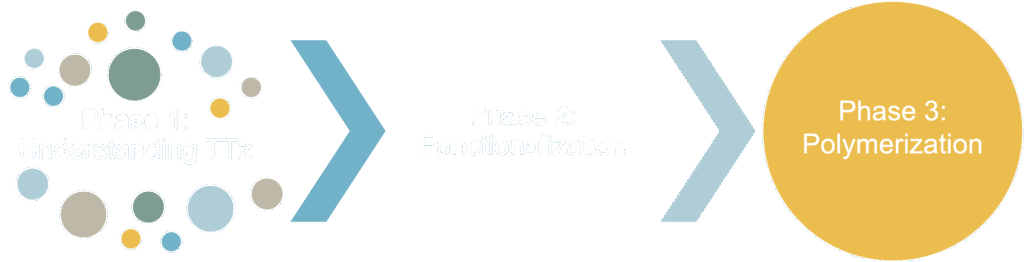I developed three phases of research: Understanding TTz reaction conditions, functionalizing PTQ10 for use with TTz, and polymerization.